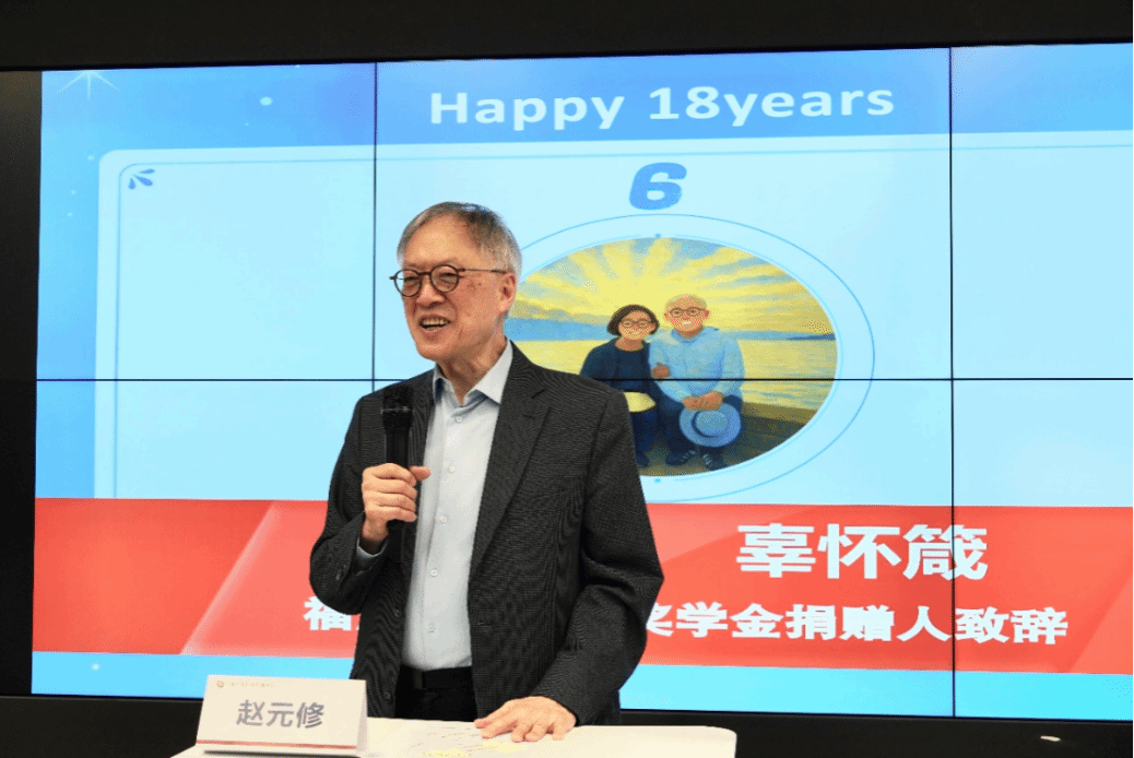 典礼上,赵氏廷芳基金会董事长赵元修、董事辜怀箴分别致辞。赵元修董事长分享了自己年轻时的异国求学经历,并殷殷寄语在场的同学要心怀勇气,不惧失败。辜怀箴董事暖心鼓励同学们做人生的耕耘者,面对有起有伏的人生,要相信“努力会把你带到更好的地方去”。典礼结束后,基金会嘉宾与同学们围坐交流,大家畅所欲言,在轻松对谈中实现思想的碰撞和情感的链接。展望未来,上海大学与福慧赵氏廷芳基金会将共同续写助学育人的新篇章。