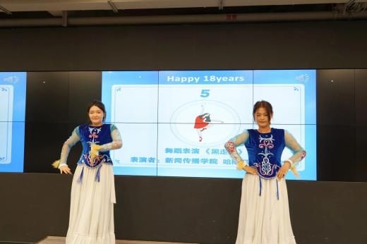 随后,获奖同学带来了节目表演。新闻传播学院研究生王羽以情绪饱满、慷慨激昂的诗朗诵《我的南方和北方》描绘祖国的壮丽山河,表达对祖国的热爱。新闻传播学院本科生哈斯耶提、帕孜拉带来舞蹈表演《黑走马》,与现场嘉宾和师生热情互动,朝气蓬勃的舞步不仅寄托了对家乡的思念与热爱,也展示了大家欢聚一堂的快乐。