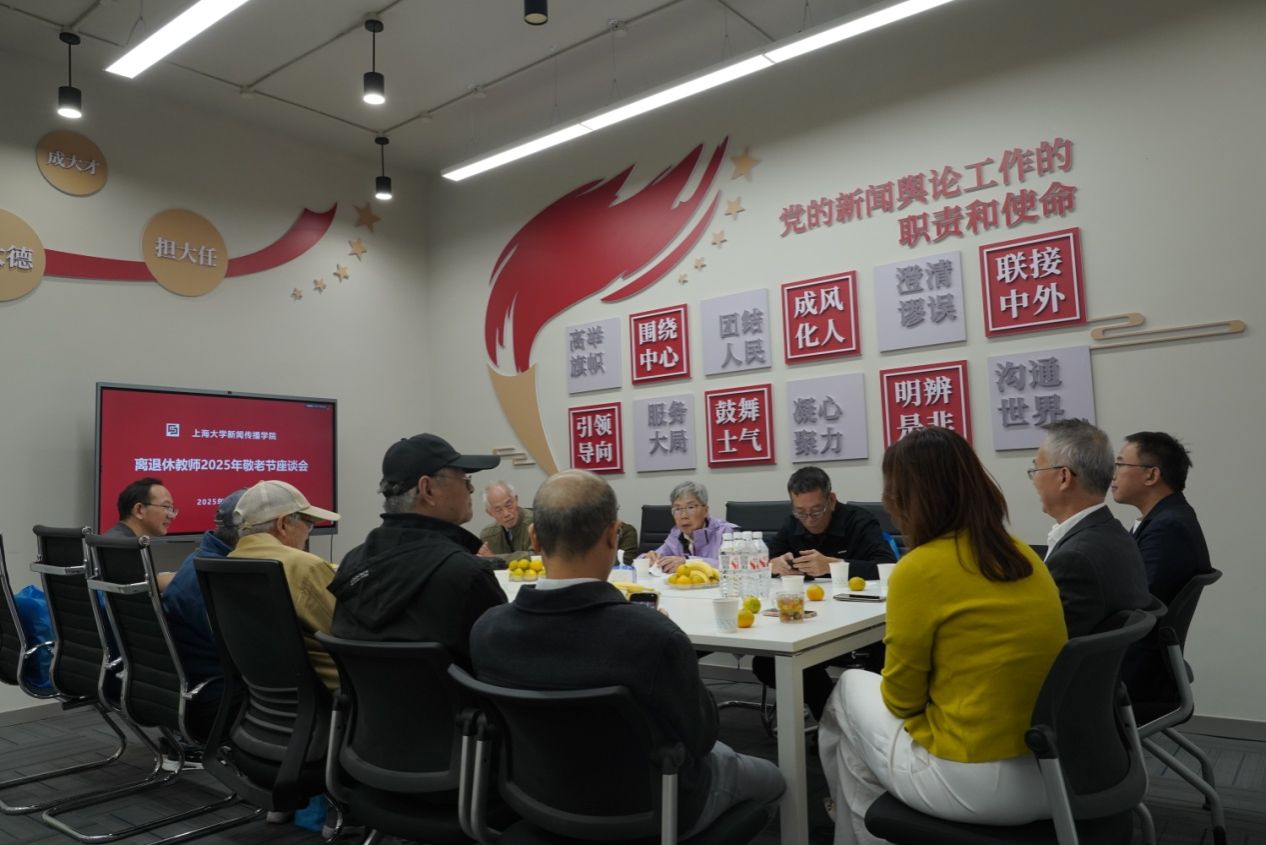 金秋送爽,情暖重阳。近日,上海大学新闻传播学院在实验中心102会议室举行离退休教师2025年敬老节座谈会。学院党委书记王晴川,党委副书记、副院长王智君,副院长牛盼强、副院长周宇豪等领导老师与学院退休老教师们欢聚一堂,共忆执教岁月,共话学院发展,在温馨氛围中传递对退休教师们的敬意与关怀。学院党委副书记、副院长王智君主持座谈会。