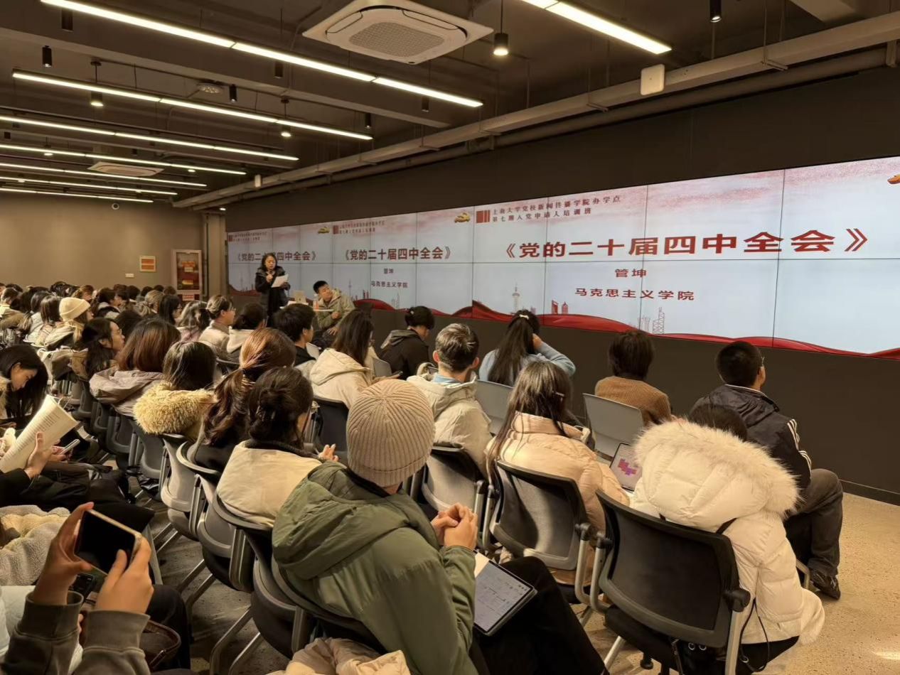 2025年12月5日下午,新闻传播学院在智能媒体传播创新实验中心104室举行党的二十届四中全会精神专题学习会,深刻领会国家“十五五”规划建议。学院邀请到上海大学学习贯彻党的二十届四中全会精神理论宣讲团专家、马克思主义学院教师管坤担任主讲嘉宾,学院师生通过线上线下相结合的方式参加了本次学习会,活动由学院党委组织员苏洁老师主持。