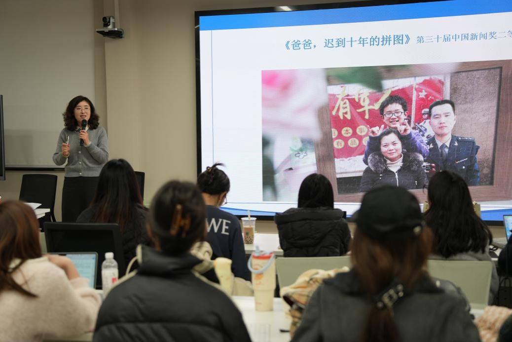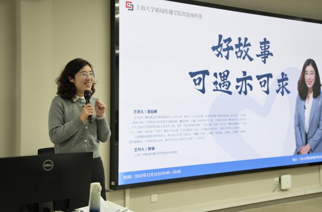 12月16日,智能视听系举办中国新闻奖获奖作品创作分享会。江苏省广播电视总台荔枝新闻中心主任记者姜超楠以“好故事可遇亦可求”为主题,为全院师生带来了一场兼具深度、温度与实操性的精彩讲座。