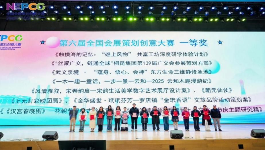 大赛以“高质量融合、一体化发展”为主题,设立会展创意、设计、传播、公益四大赛道,精准对接文旅会展融合发展新需求,吸引了全国200余所高校、2500余支团队参与。历经初赛、省赛(国赛选拔赛)和国赛三个赛段的激烈角逐,共评出一等奖93项、二等奖164项、三等奖138项,参赛规模与成果数量均创历史新高。