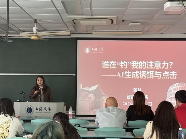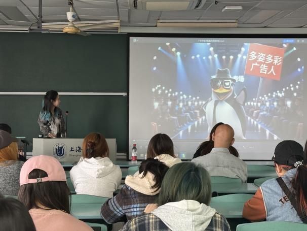 从“算法旁观者”到“治理参与者”,从“信息接收者”到“真相传递者”——青年教师们抛开传统叙事,以核心论点引发强烈共鸣。张林老师聚焦“算法治理”,号召学生从“被钓的鱼”到“清朗的守护者”。刘峰老师通过政务传播、企业宣传、个人IP打造等案例,展示了智能视听在广泛领域的应用价值。陈鑫盛老师则探讨“社会可见性”,指出新闻学在数字时代具有重构感知、连接真实与认知的独特使命,是让复杂社会现实被看见的桥梁。段秋婷老师以“为什么热AI广告”为题,分享AI 时代的广告育人方向;张莉莉老师则通过学生的项目案例生动介绍专业的行业优势与培养特色。青年教师的分享,不仅为在场学子清晰呈现专业发展路径,更生动展现了新传学子的创意活力,为在场同学注入了前行的力量。