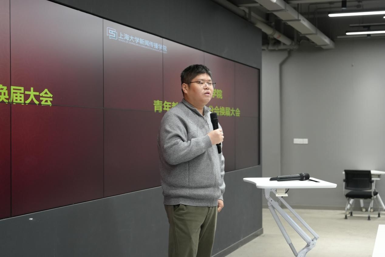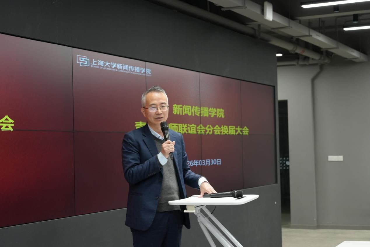 2026年3月30日上午,上海大学新闻传播学院第二届青年教师联谊分会换届大会于延长校区智能媒体创新实验中心召开。学院党委书记王晴川,党委副书记、副院长王智君,副院长牛盼强、周宇豪,上一届学院青联分会成员及青年教师代表出席会议。大会由新闻传播学院党委组织员苏洁主持。